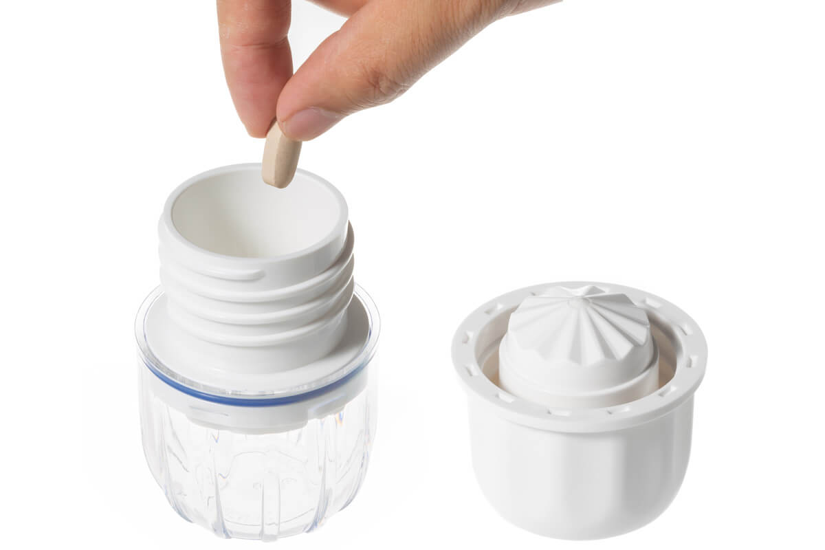- Our patented screw design aids in the initial breakage of pills into chunks and enables a pepper grinder mode for continuous grinding of pill chunks into fine powder, sifted down to the bottom cup.
