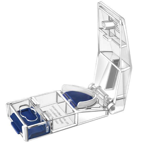 Effortless Pill Placement: MAXSPLIT’ s U-shaped elastic holder with a rubber bed simplifies the placement of pills of varying sizes, shapes, and thicknesses, ensuring safe and accurate splitting.