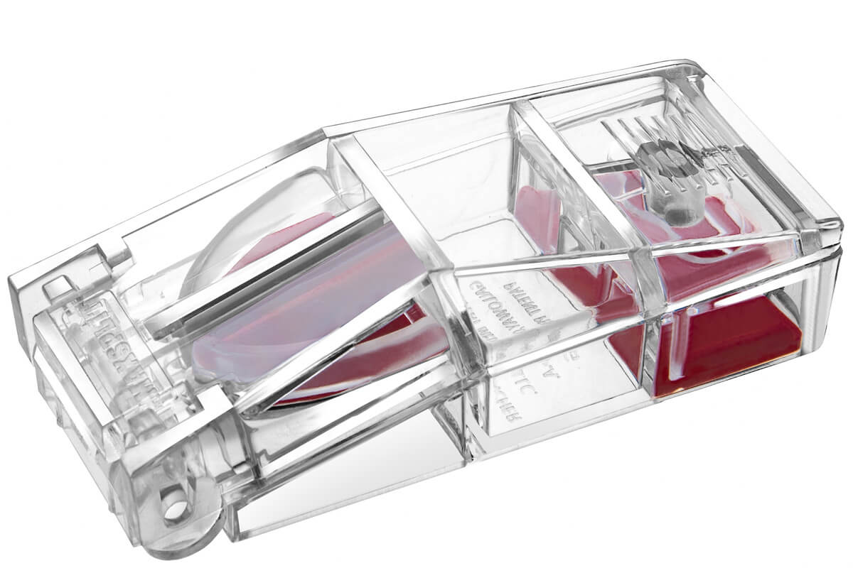 MAXSPLIT offers precision cutting with its stainless-steel blade, ensuring accurate splitting and minimizing the risk of splintering or crumbling pills. Crafted from transparent materials, it provides clear visibility of the pill splitting process for added convenience and accuracy.