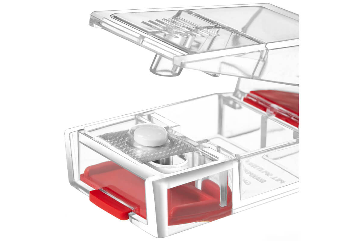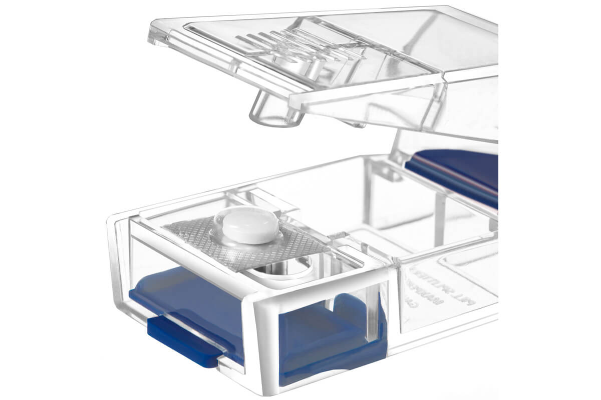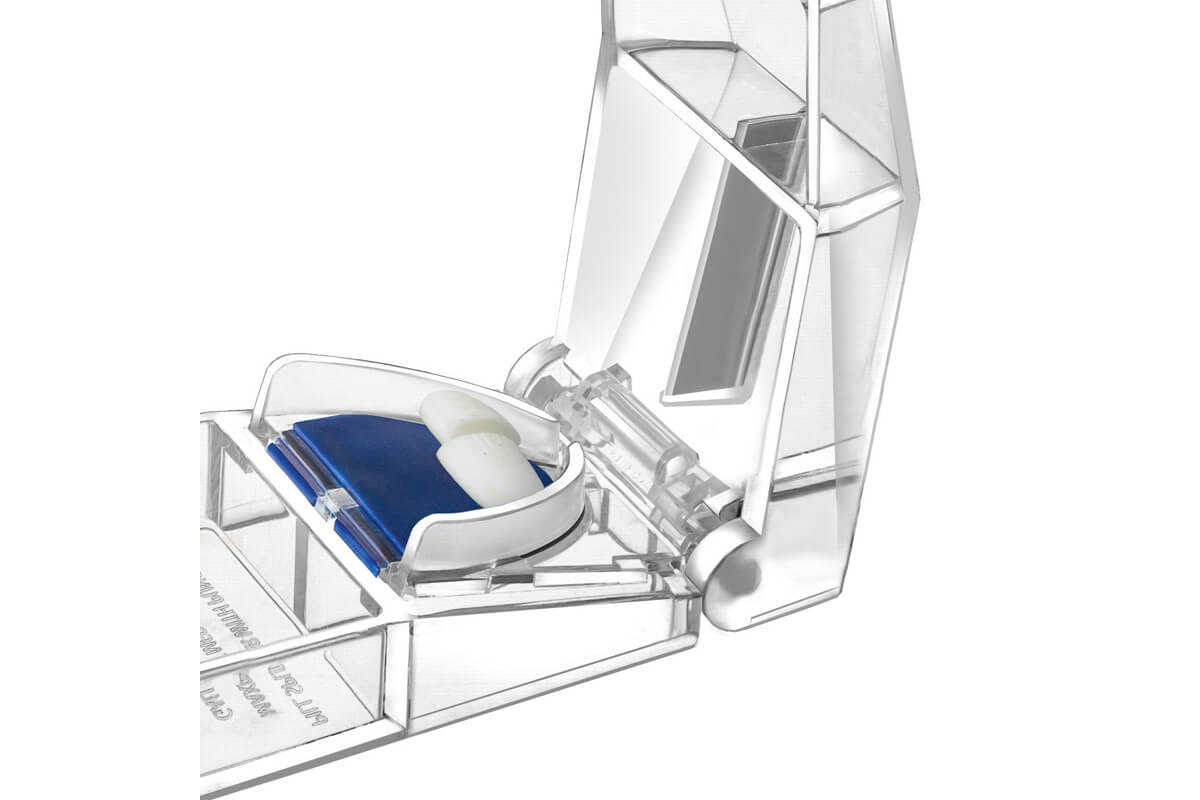 - Crafted from transparent materials, MAXSPLIT allows for easy monitoring of the pill splitting process, ensuring visibility of pills and facilitating accurate splitting.